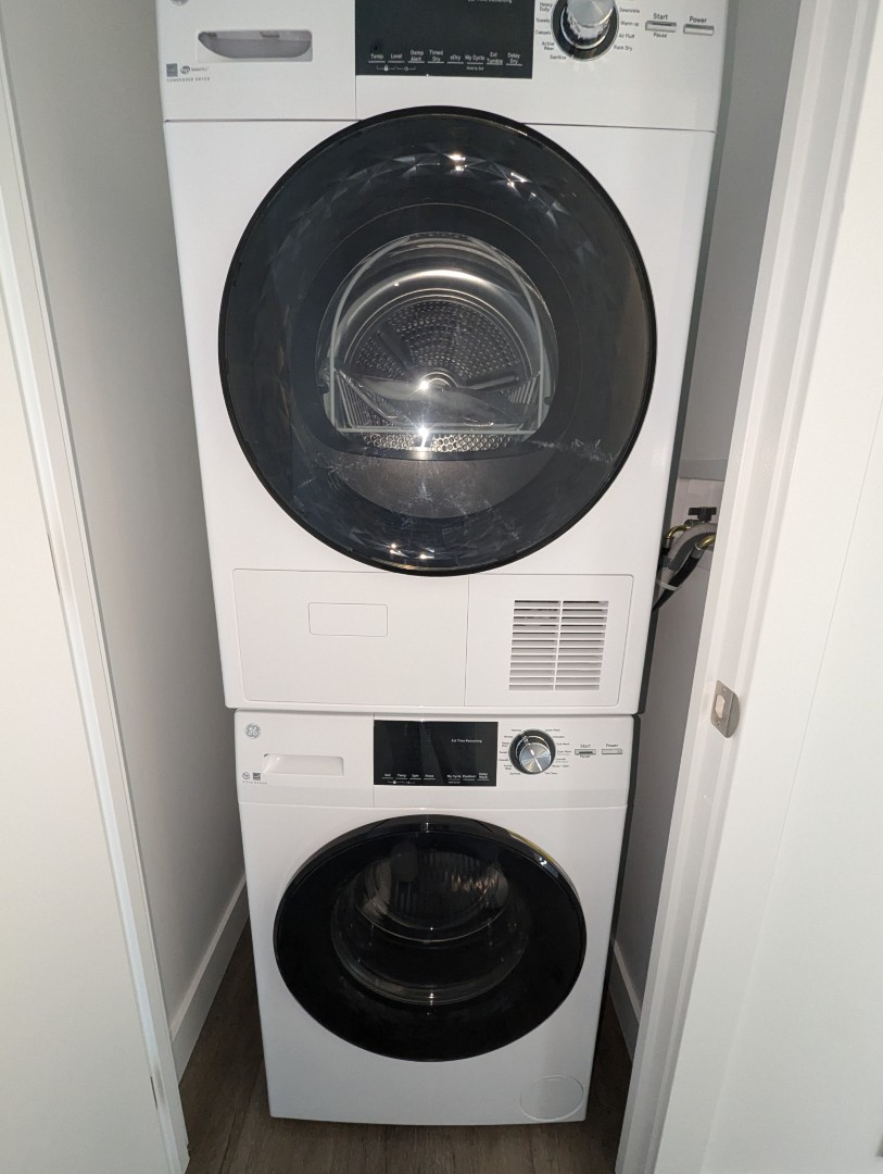 Laundry in unit. One indoor parking spot included. Heat, hot water and water included.