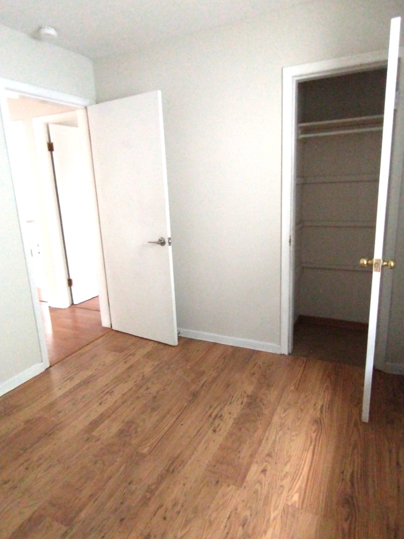 Three good sized bedrooms, kitchen with breakfast bar and private deck. Laminate flooring throughout. Coin-operated laundry in building.