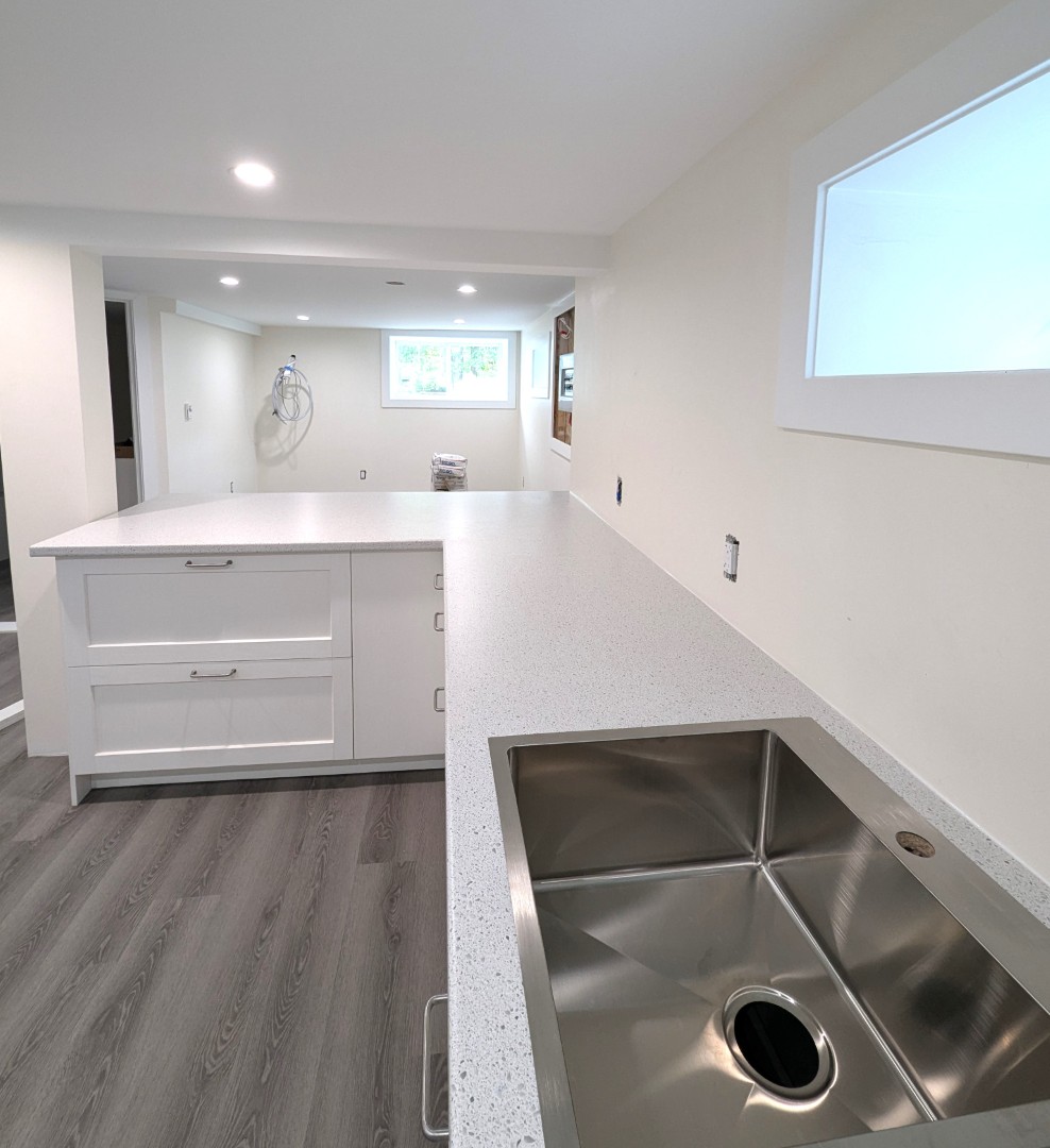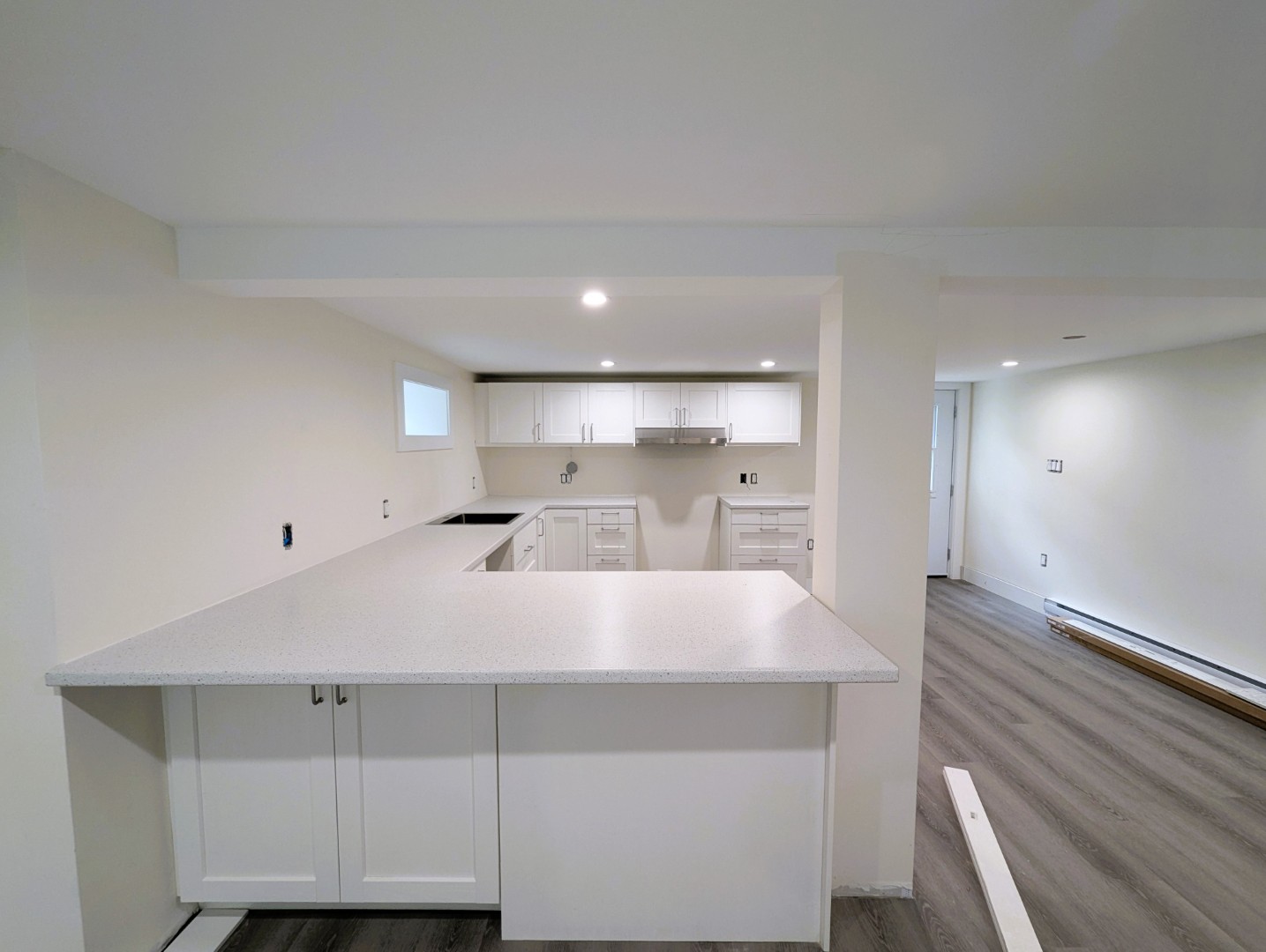 Luxury vinyl plank flooring throughout. Huge kitchen with plenty of counter and cupboard space and large breakfast bar. Open concept eating/dining area.