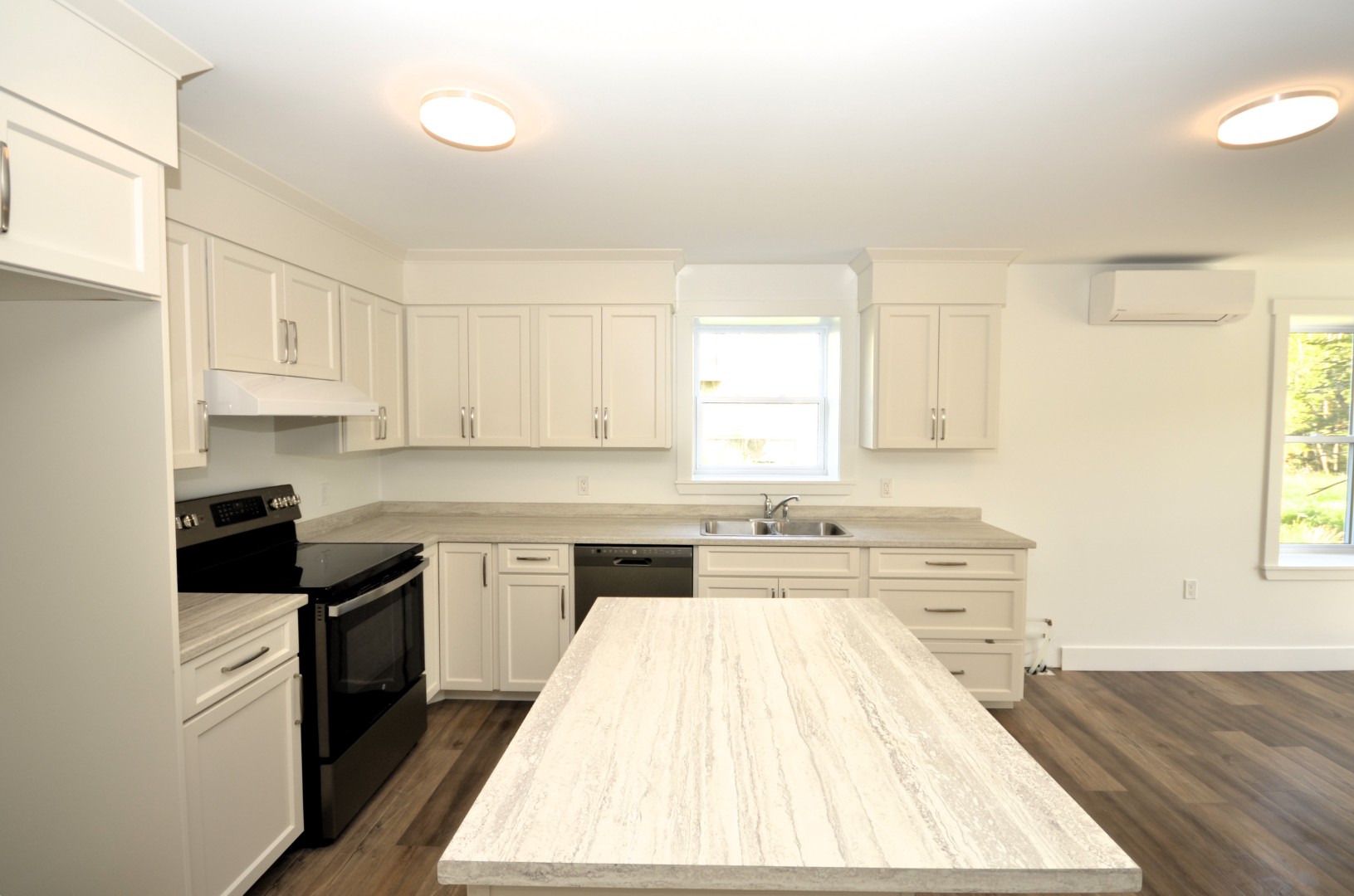 Two ductless heat pumps ensure efficient heating and cooling. Parking for two cars. Lawn care and snow removal of driveway included.