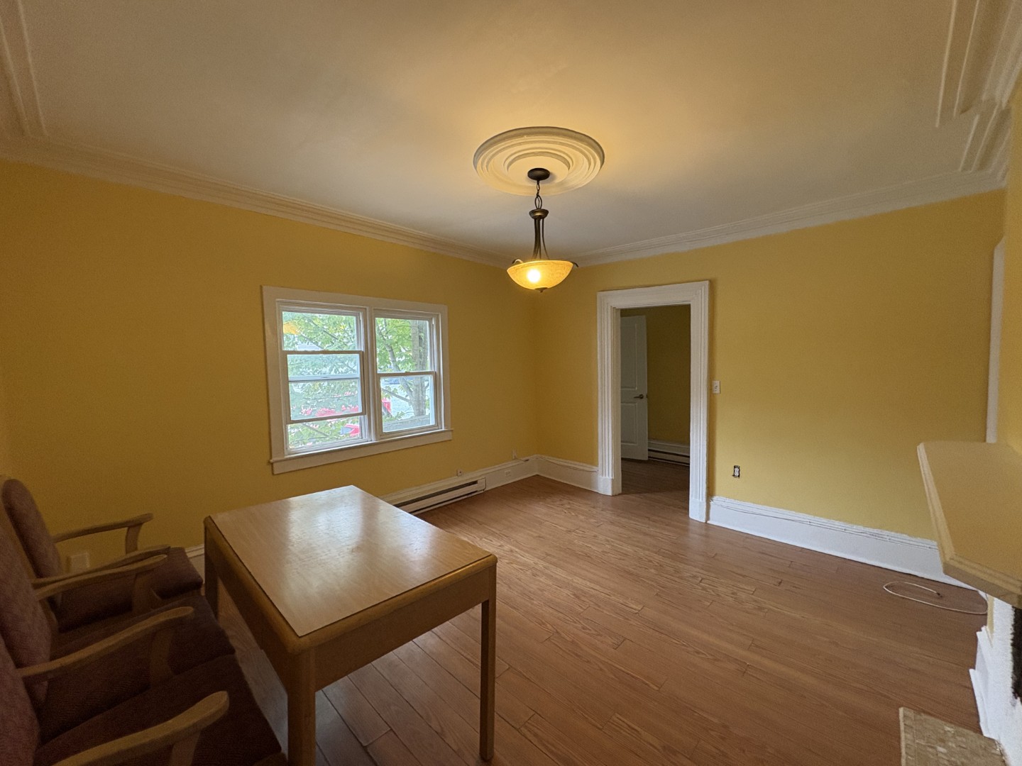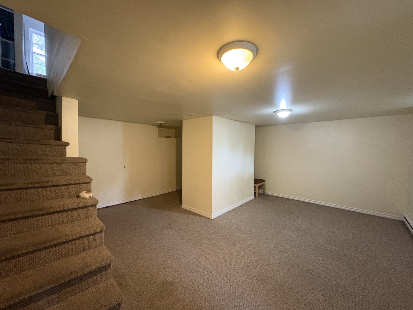 Two bedrooms upstairs along with one full bath. Lower level has a large flex space, often used as a 3rd bedroom.