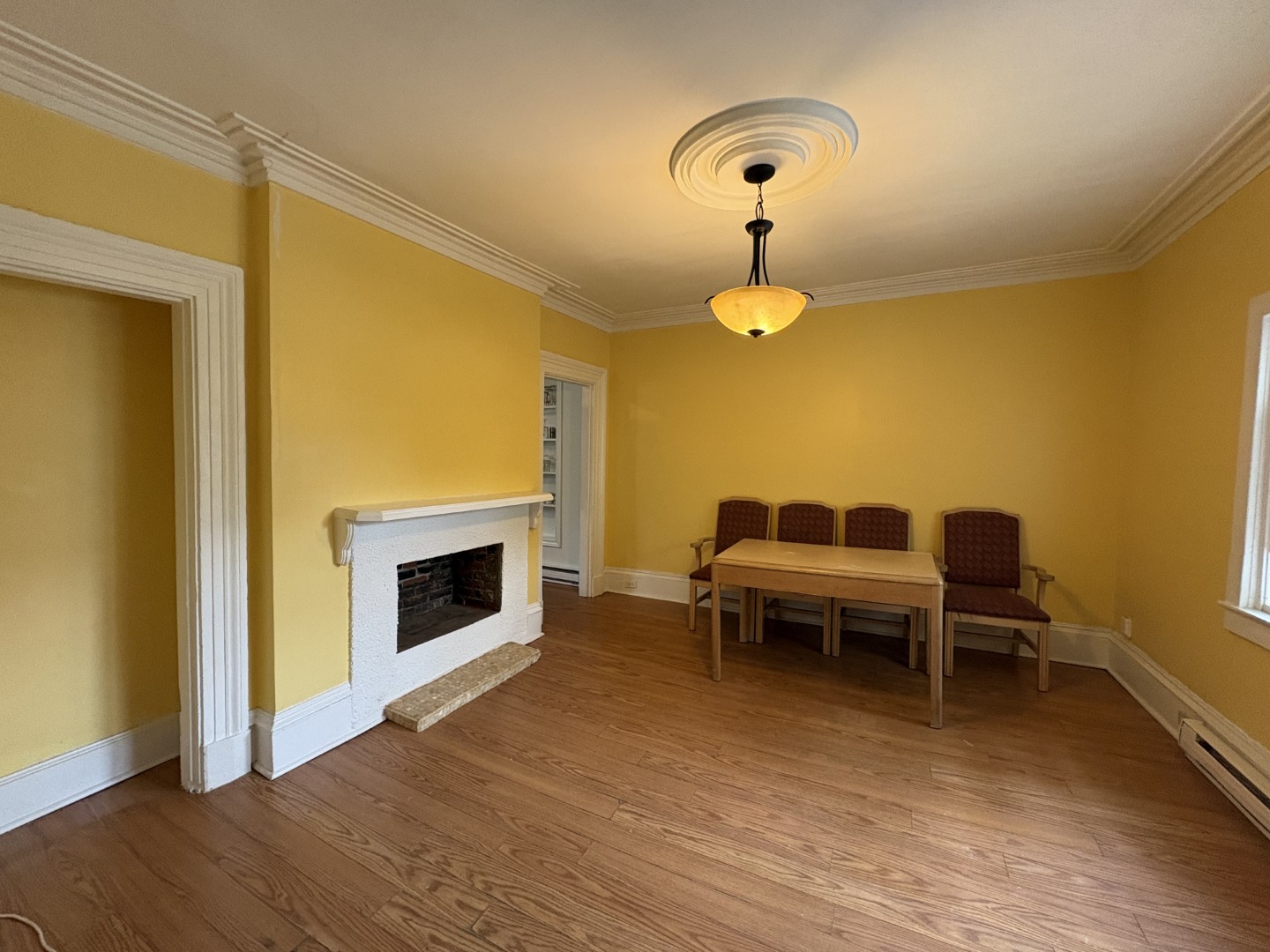 Off the entry way is a large living area with decorative fireplace - plenty of space for a shared dining/living area. There is also space for a small table in the kitchen.