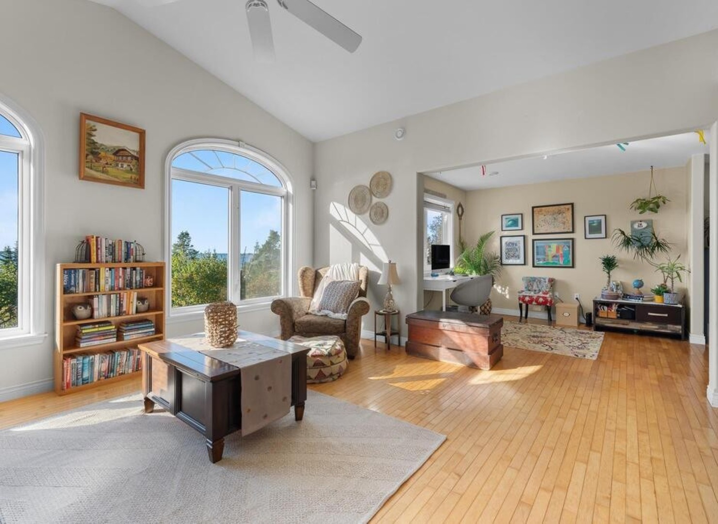 This beautifully maintained 3-bedroom, 2.5-bath home offers flexibility, comfort, and breathtaking coastal scenery from nearly every window. The main level features a bright and inviting layout with a freshly painted interior, updated bathrooms including a brand-new shower, a den or home office and the convenience of both the primary bedroom and laundry on the main floor. The spacious kitchen and living areas open to multiple decks to fully enjoy the ocean views.