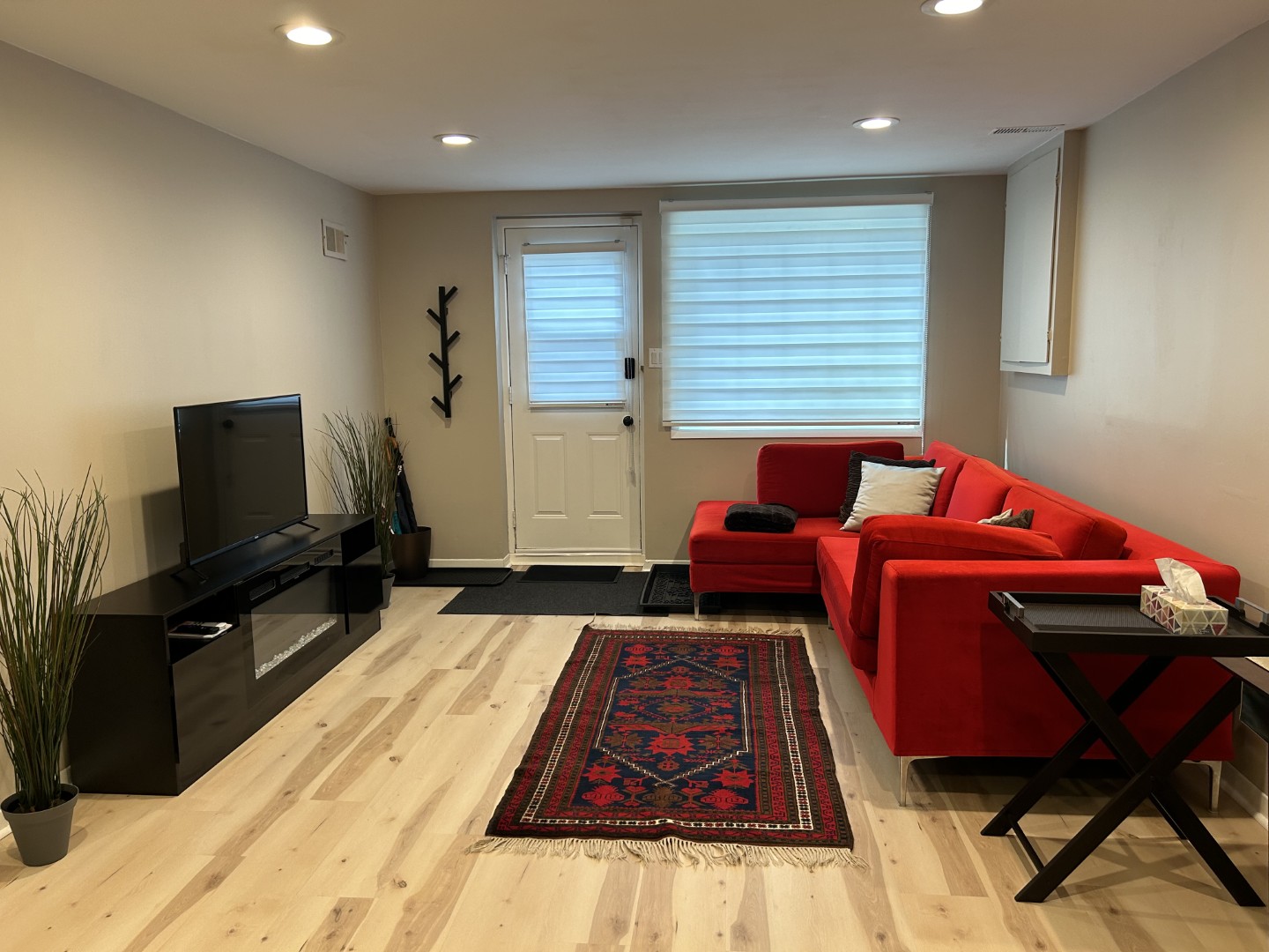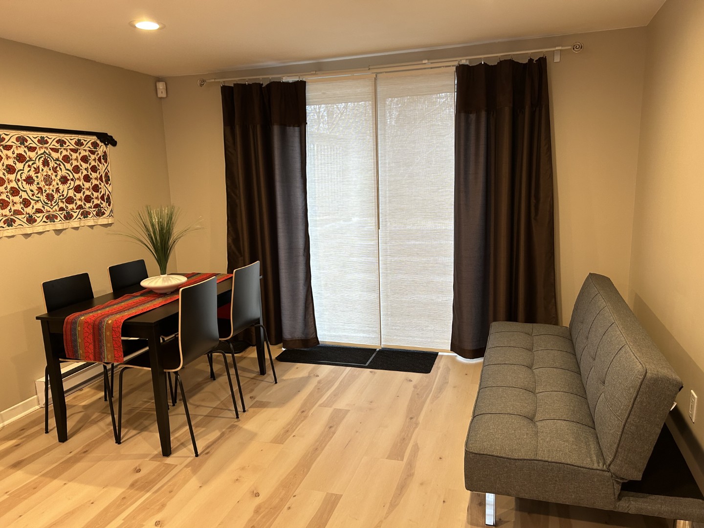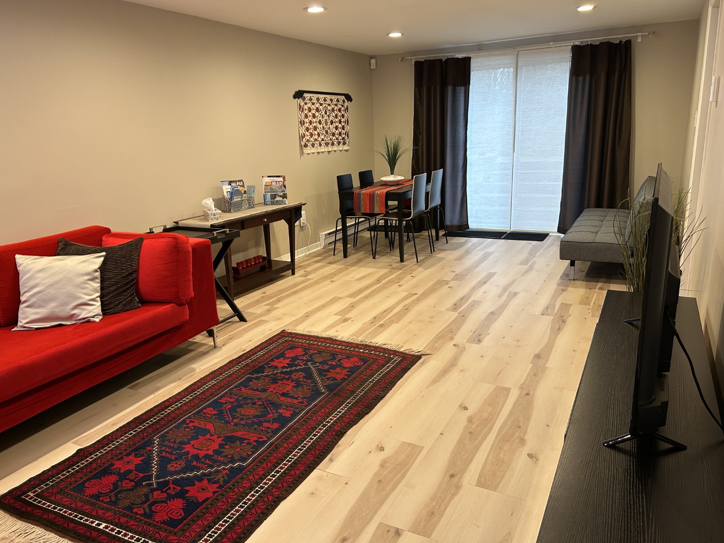 This is a large apartment with 1166 sq ft of beautiful, comfortable living space. Open concept living and dining area with electric fireplace and 43 HD Smart TV. Large window and sliding glass doors providing access to the backyard while bathing the space in natural sunlight.