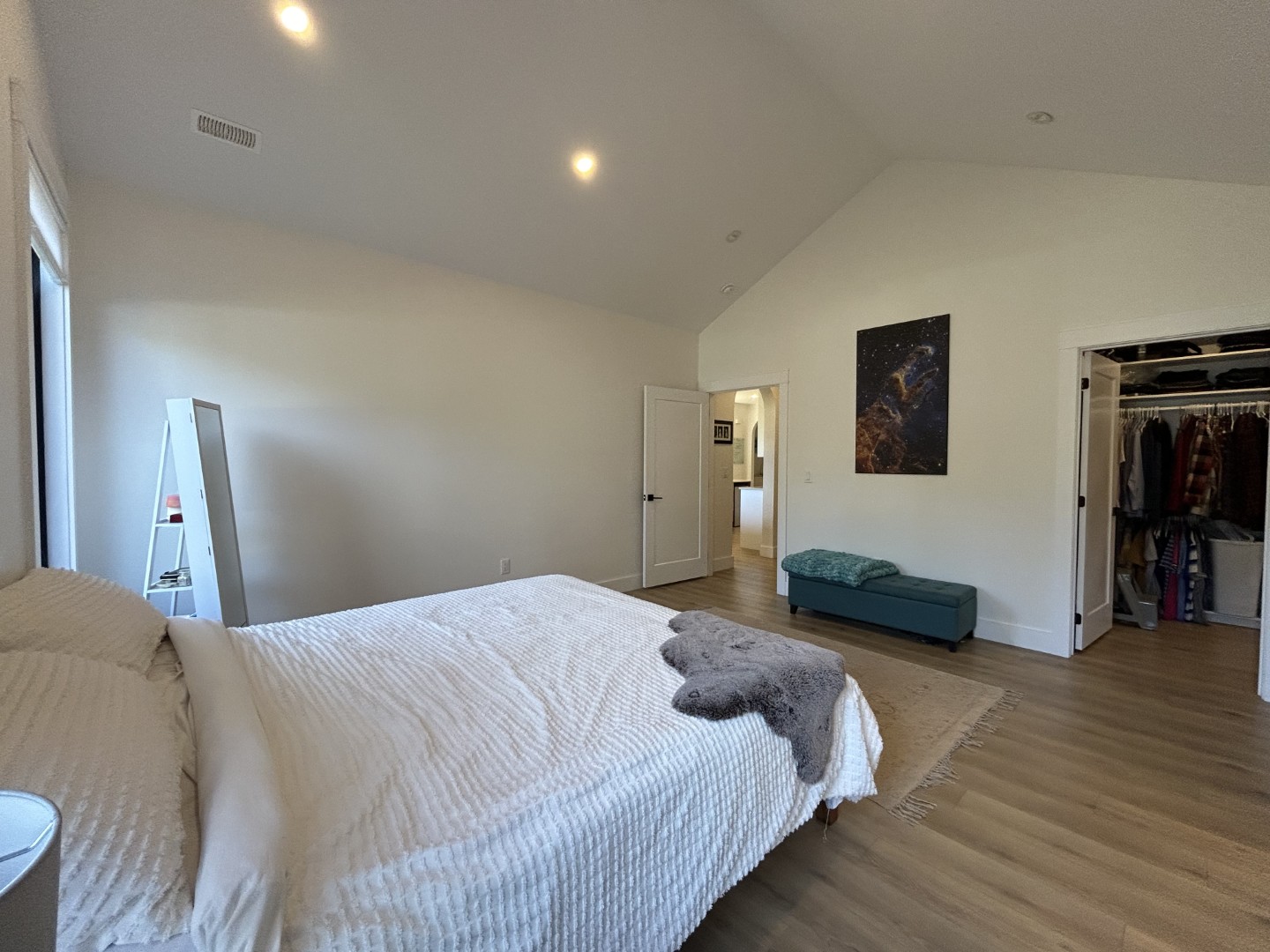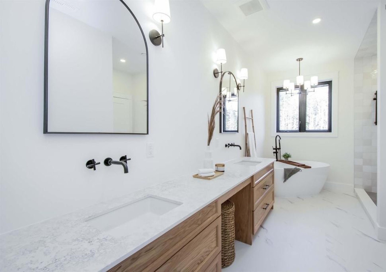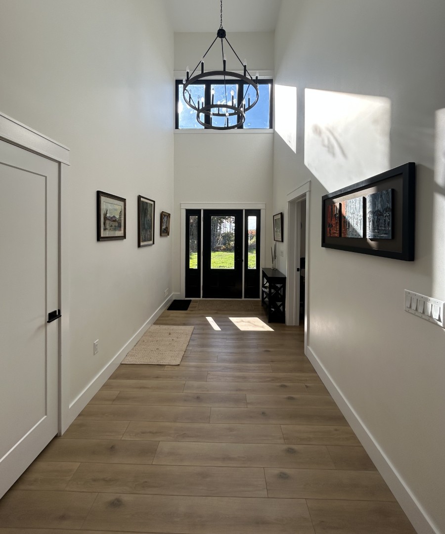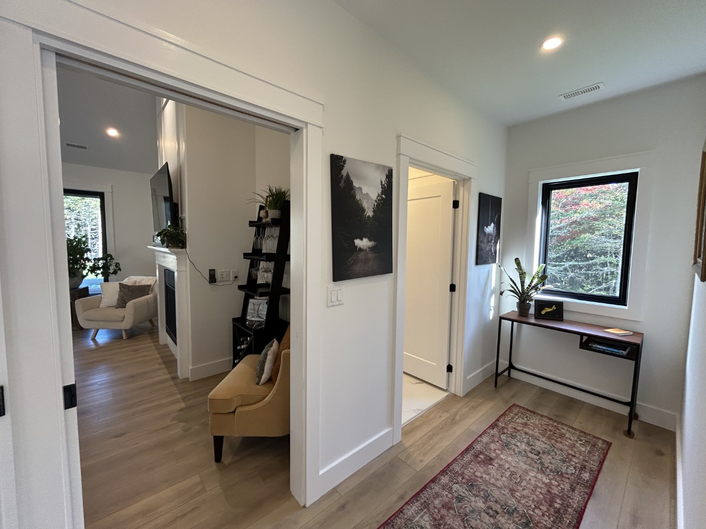 Exquisite interior with 21-foot ceilings and full-length windows to flood the space with natural light. Home office at front of the home off the foyer. A chef’s dream kitchen with 6 burner propane stove and massive island overlooking the grand open concept dining and living area with gorgeous propane fireplace. From here move seamlessly to the ground-level covered patio.