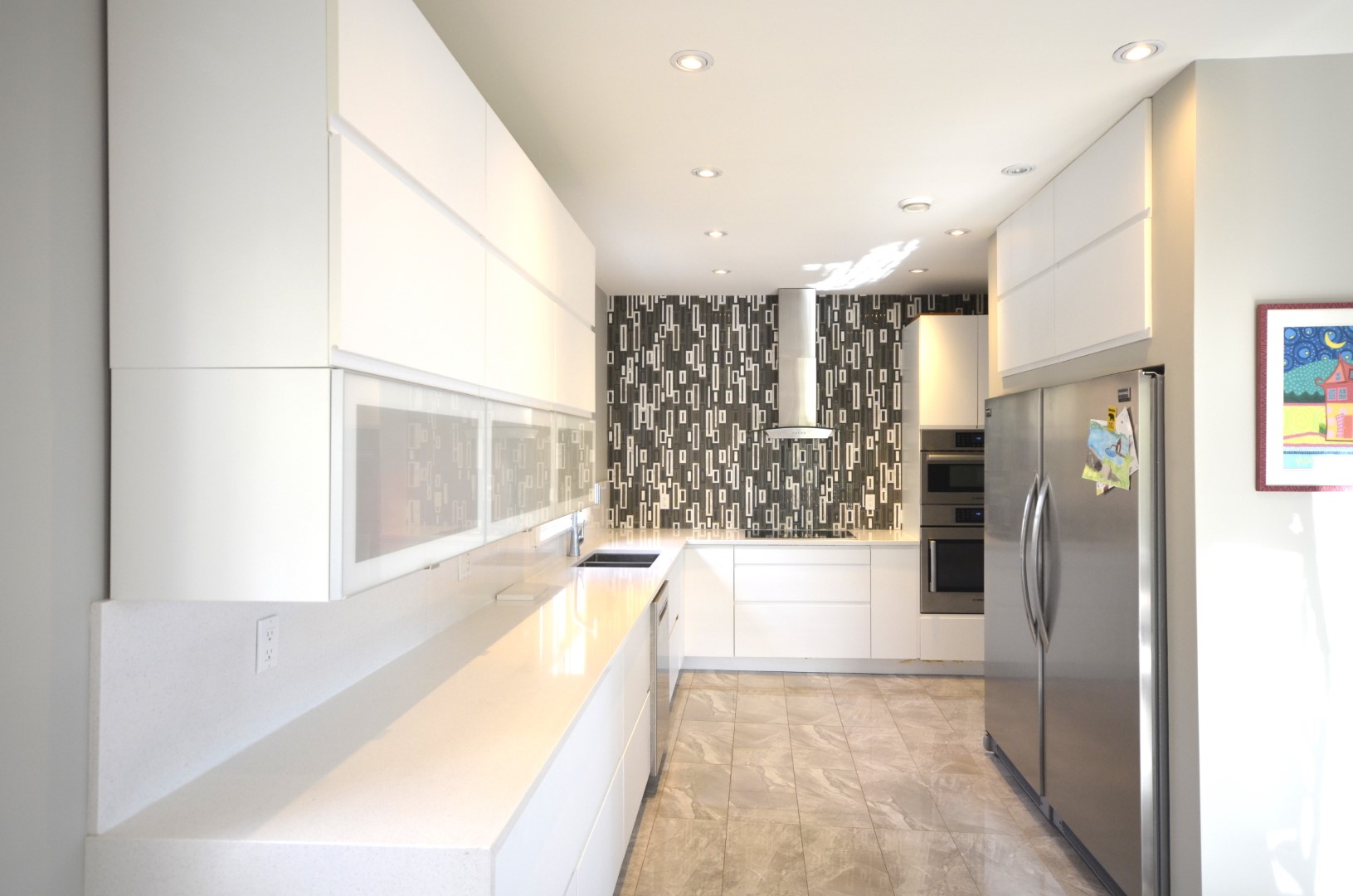 Main floor includes modern eat-in kitchen with Corian countertops, built-in stove/microwave, cooktop and huge side-by-side fridge/freezer. Perfect for entertaining. Open concept living and dining area with large family room nestled between living room and kitchen. Powder room on main floor.