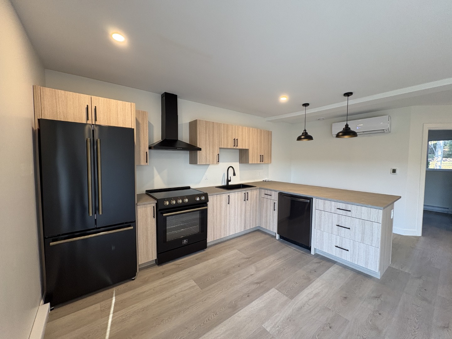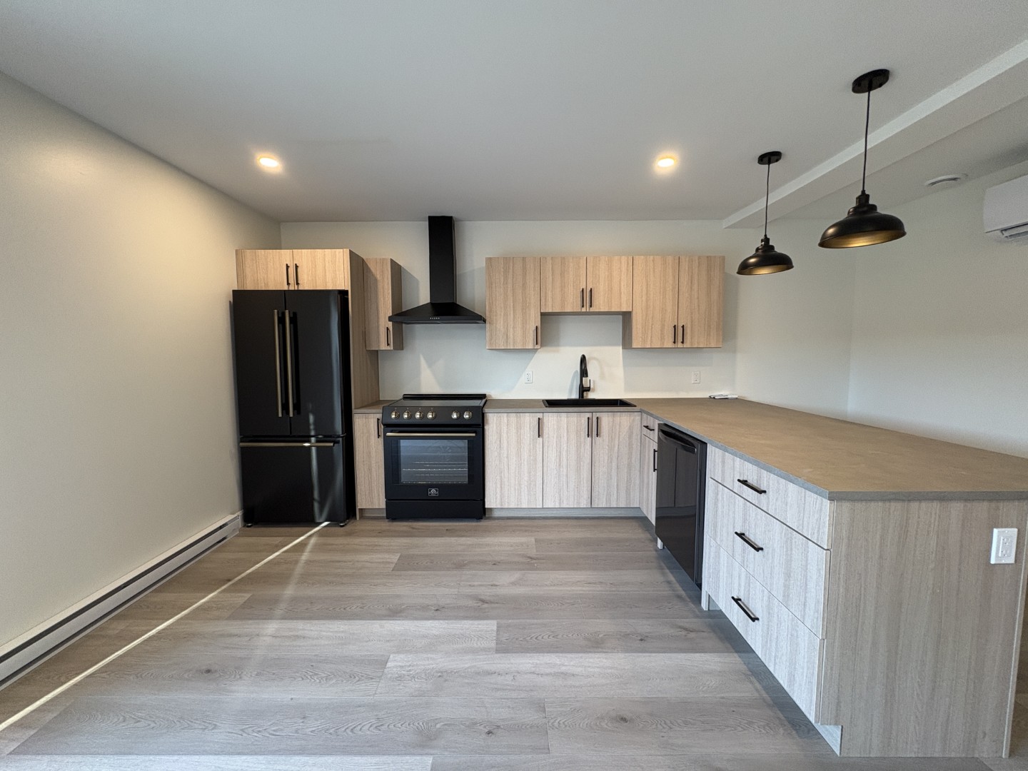 Large entry way leads to a very spacious open concept living/dining/kitchen area. Kitchen with all new appliances and large breakfast bar. Patio doors to one of two deck private decks.