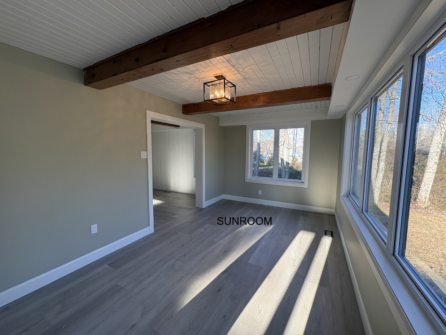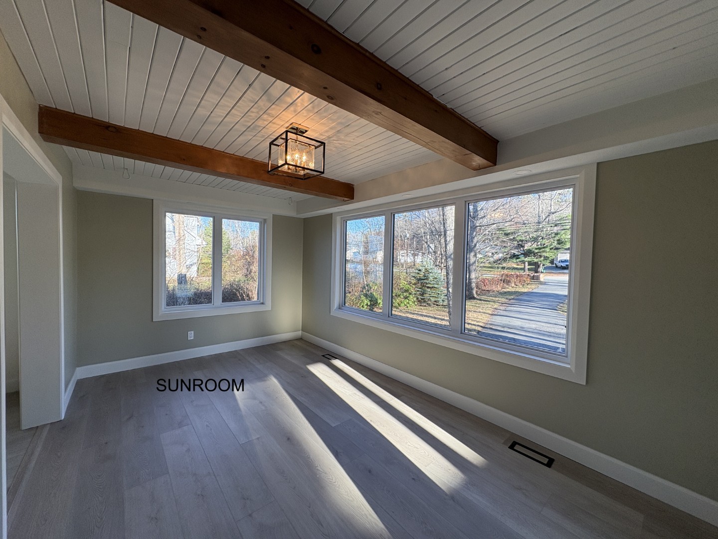 Enter the home into a spacious sunroom leading to a large dining area and brand-new kitchen. The dining area leads to the living room which opens to a family room with electric fireplace and patio doors to your deck. Laundry on the main floor.