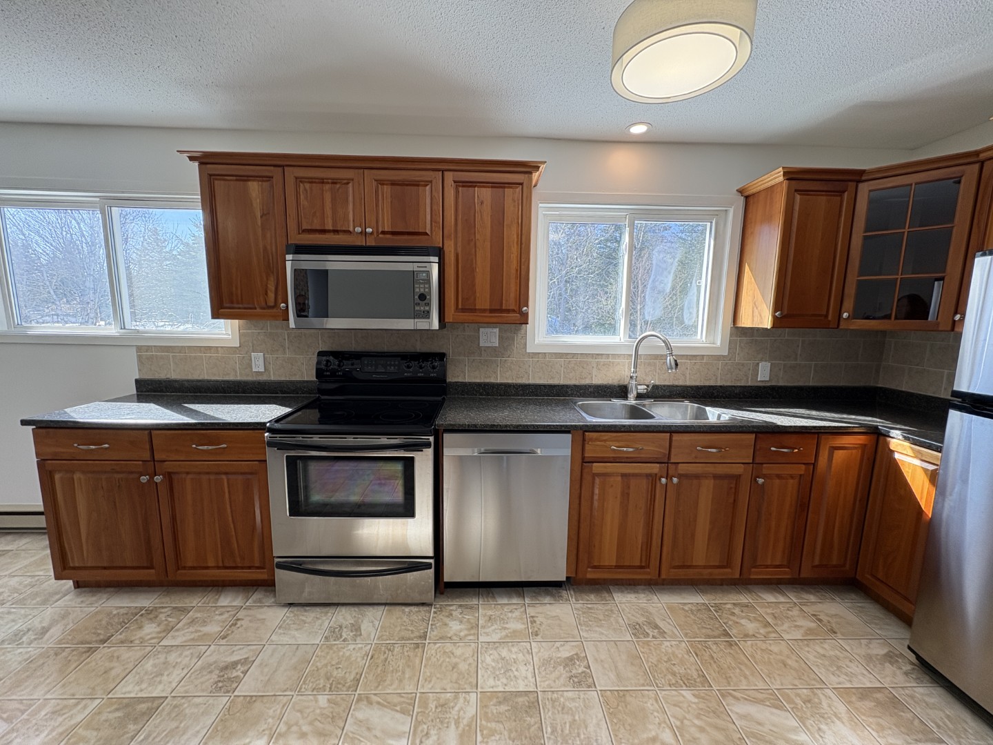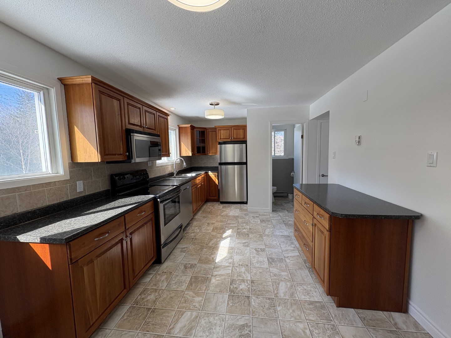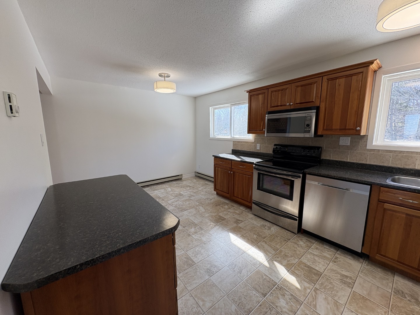 Step into the large, bright living room with ornamental brick and stone fireplace with mantle - and a Heat Pump to keep you cozy year round. If you like to cook you will LOVE the fabulous eat-in kitchen with lovely wooden cabinetry and A TON of counter space!