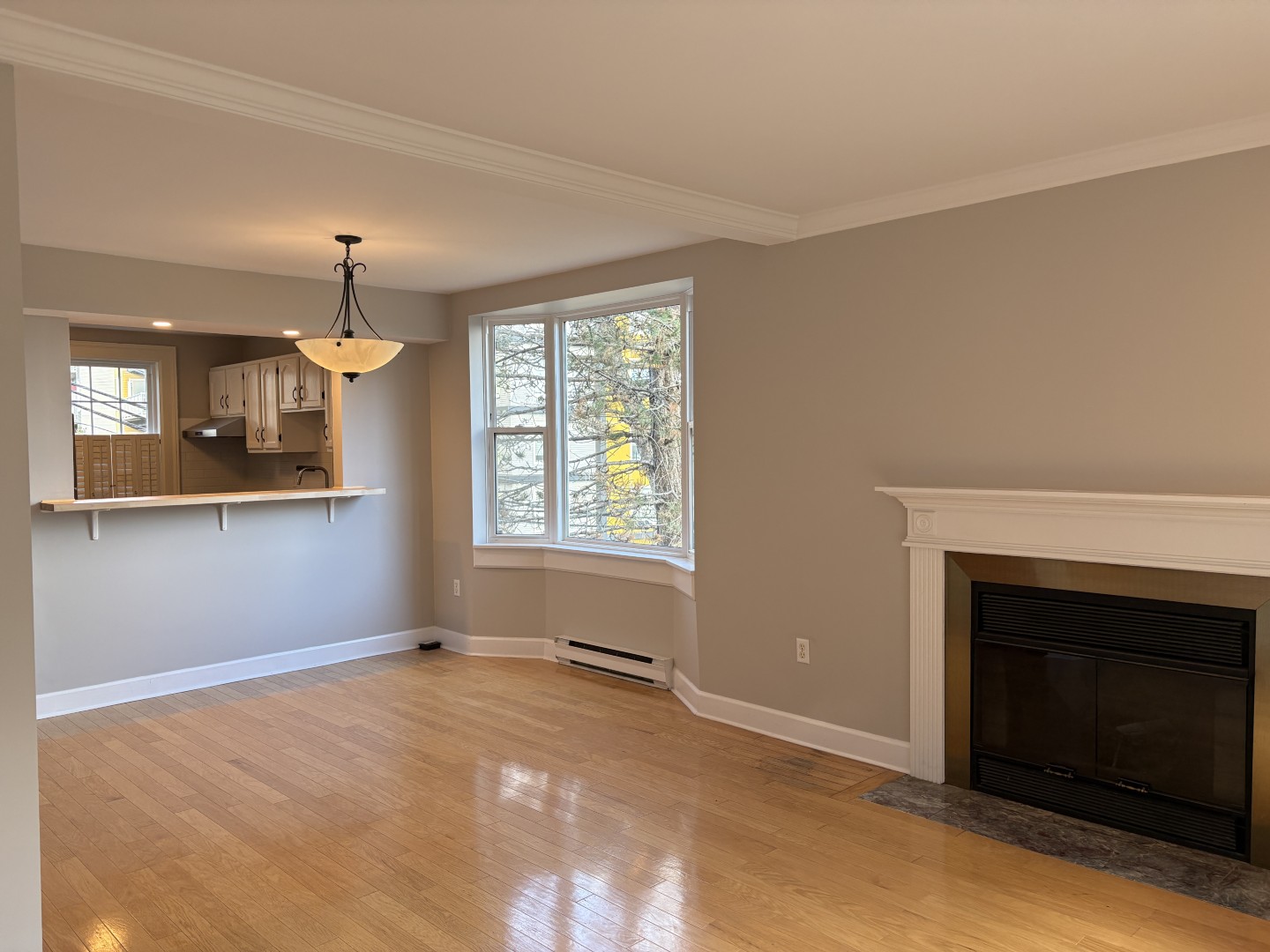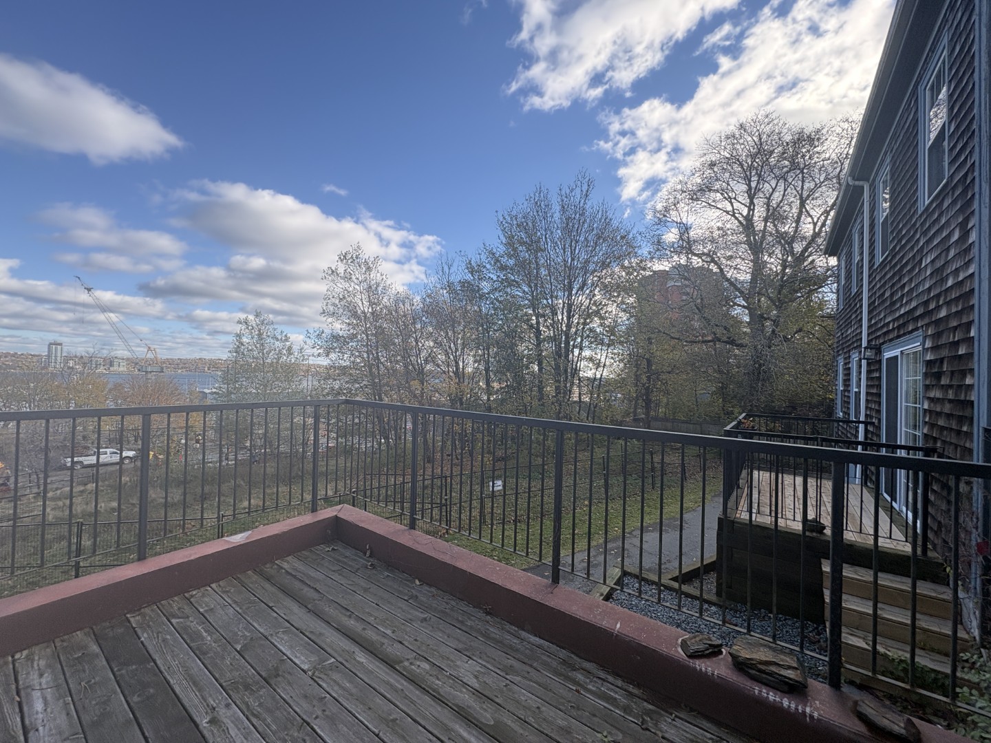 Beautifully renovated! Chic kitchen with butcher block countertops and breakfast bar overlooking the good-sized dining area. Plenty of space for entertaining! Large living area with ornamental fireplace and patio doors to great sized deck with gorgeous views of the Halifax Harbor. Shared outdoor green space with courtyard. Powder room on main floor.