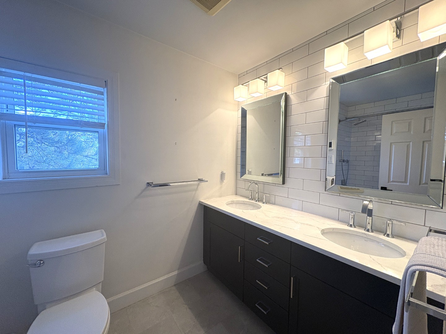 Second level has 2 good-sized bedrooms, both with two closets, and beautiful full bath with double vanity.