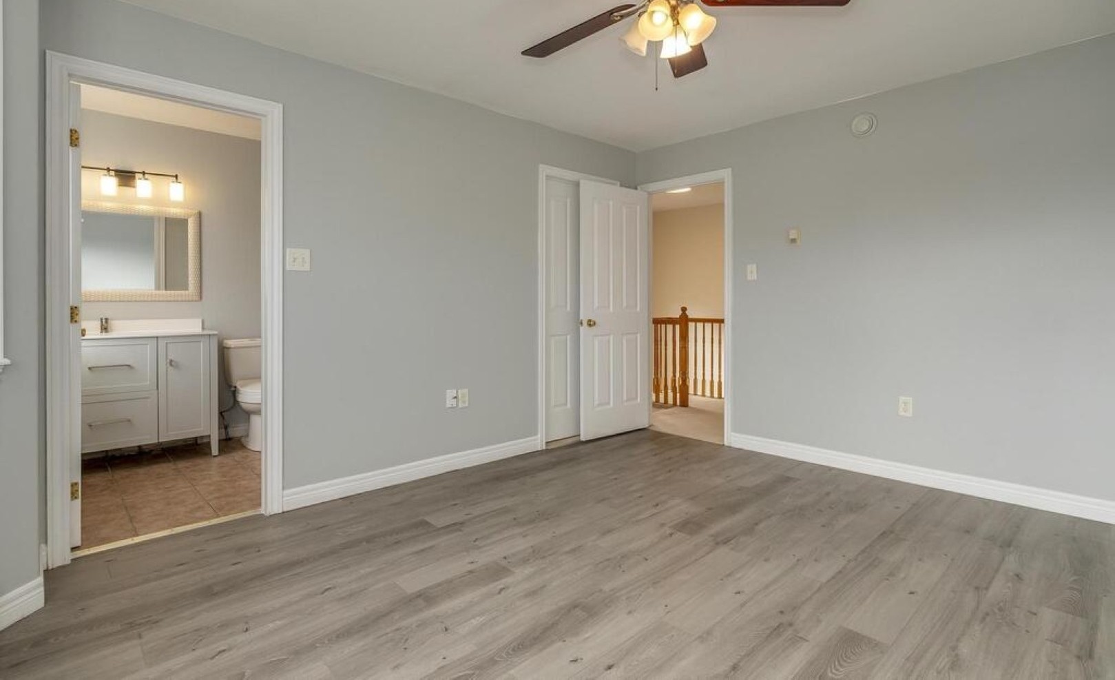 Upstairs has a spacious primary bedroom with a walk-in closet and ensuite bathroom with a jacuzzi. There are two other bedrooms and an additional full bathroom.