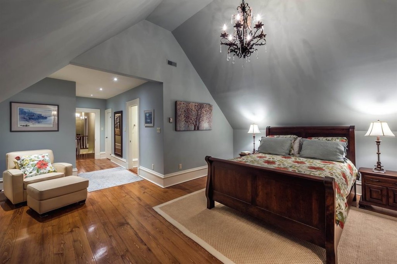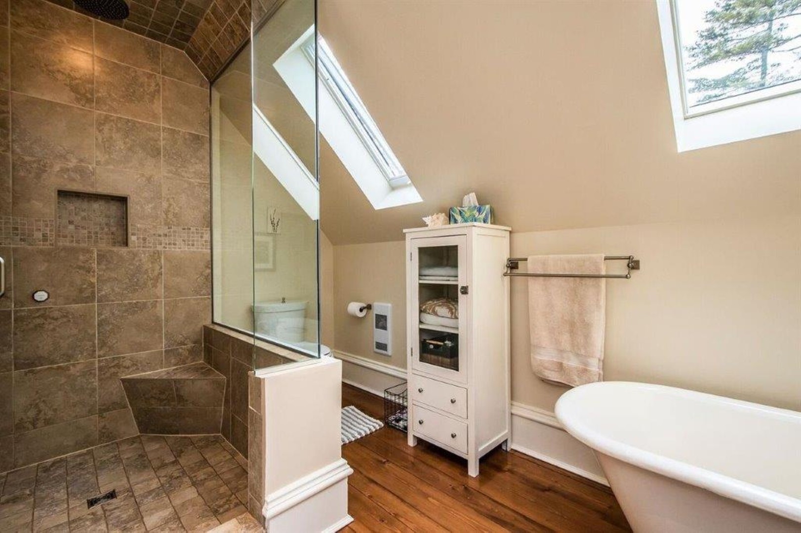 Primary bedroom with ensuite bath, steam shower and skylight. Three additional spacious bedrooms and a large full bath complete the 2nd level.