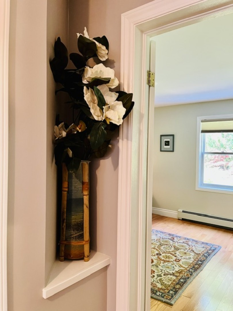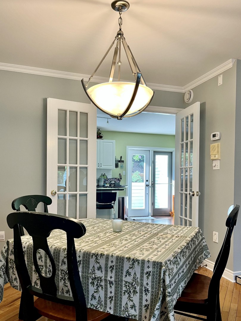 The interior boasts gleaming hardwood floors, creating a warm and inviting atmosphere. The sunken living room is comfortably furnished with big-screen TV, stereo surround sound, ornamental fireplace and private balcony with seasonal water views. Large, open concept dining area. The bright, fully equipped eat-in kitchen with stainless appliances offers a small office desk.